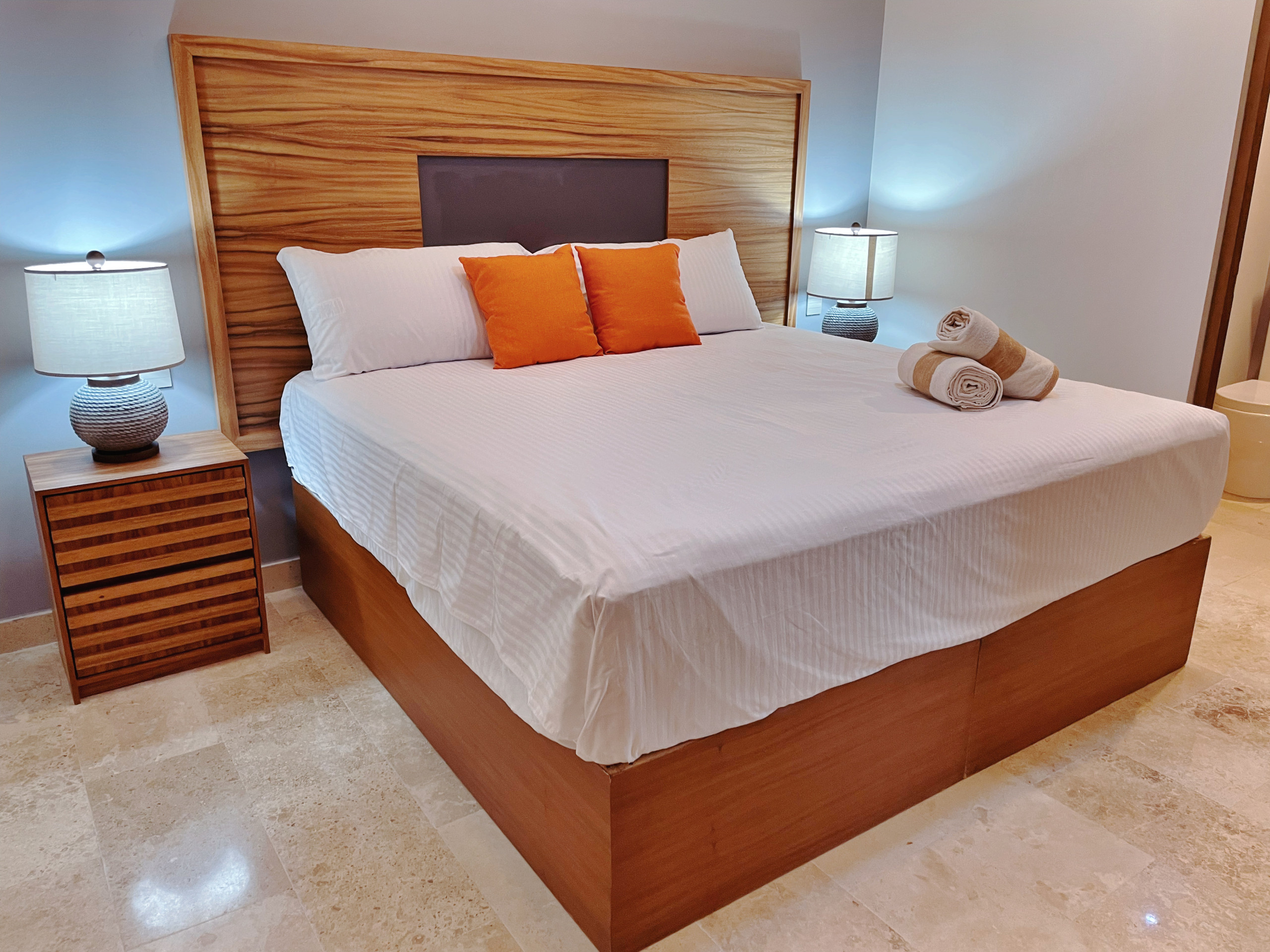 Este impresionante ático ofrece 3 amplios dormitorios y 4 baños completos, alojando cómodamente hasta 8 huéspedes. Las opciones de alojamiento incluyen tres camas king-size y un sofá-cama doble, ideal para familias, amigos o retiros ejecutivos. Todos los baños cuentan con duchas modernas de paseo y acabados de alta gama.
