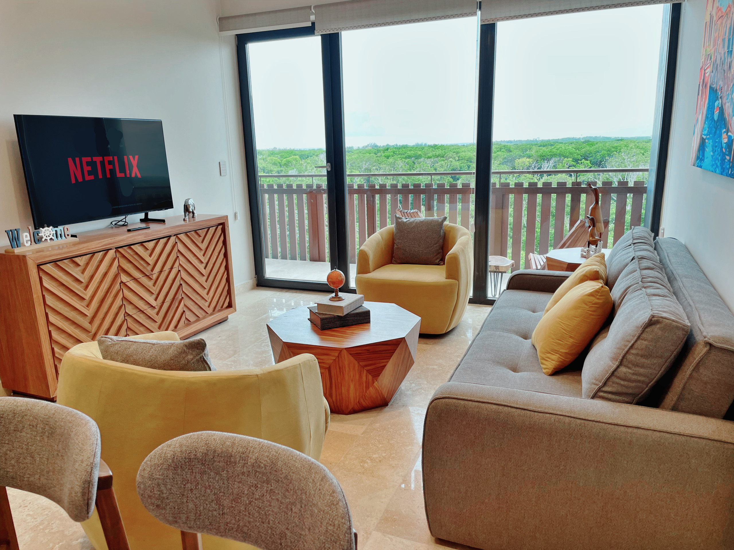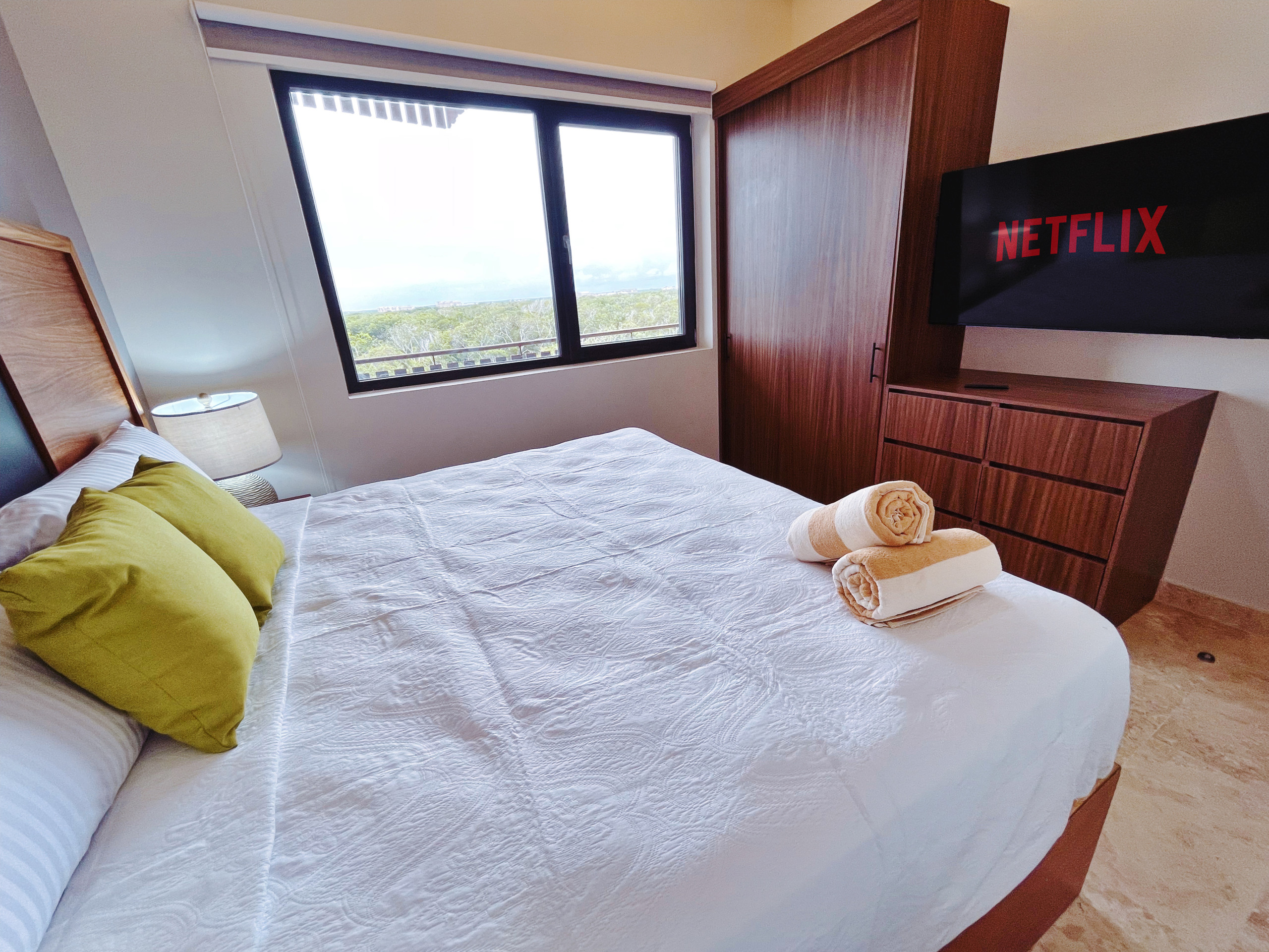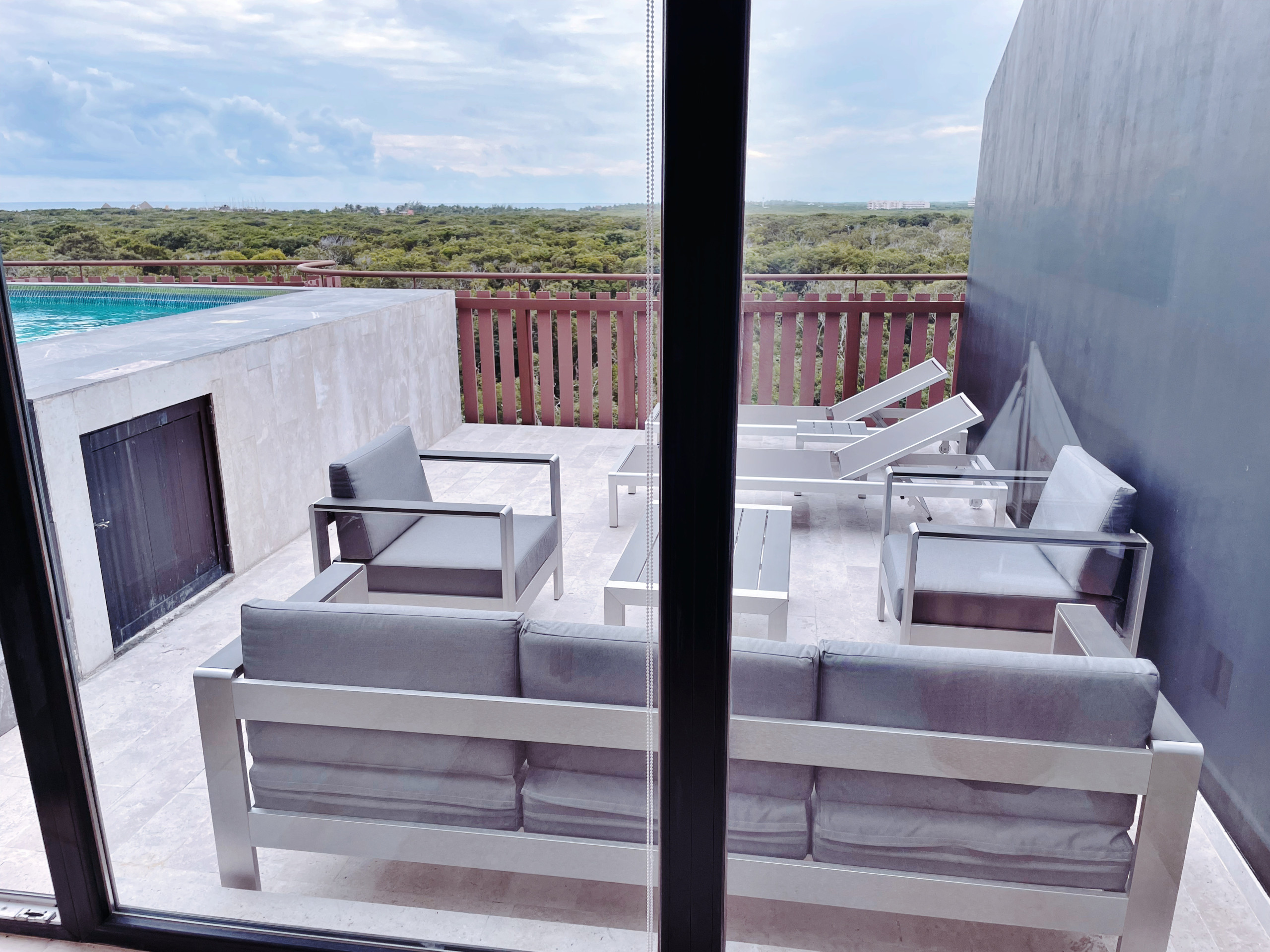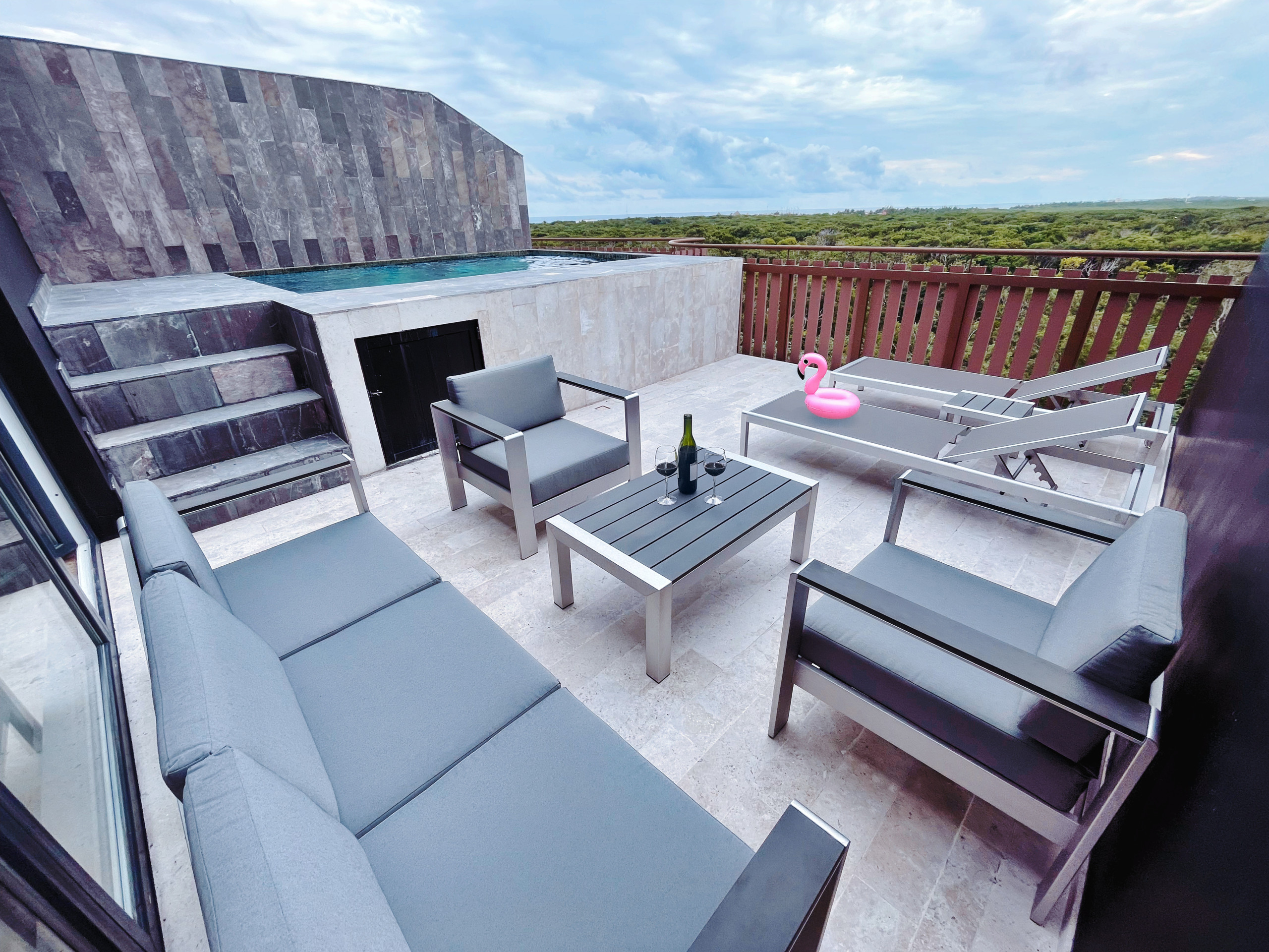 Despiértate con vistas al océano desde la sala de estar, 1 balcón y terraza privada en este exclusivo ático del Distrito Amira, un lujoso alquiler vacacional de 190 m² diseñado para huéspedes que buscan comodidad, privacidad y una experiencia premium en Tulum.