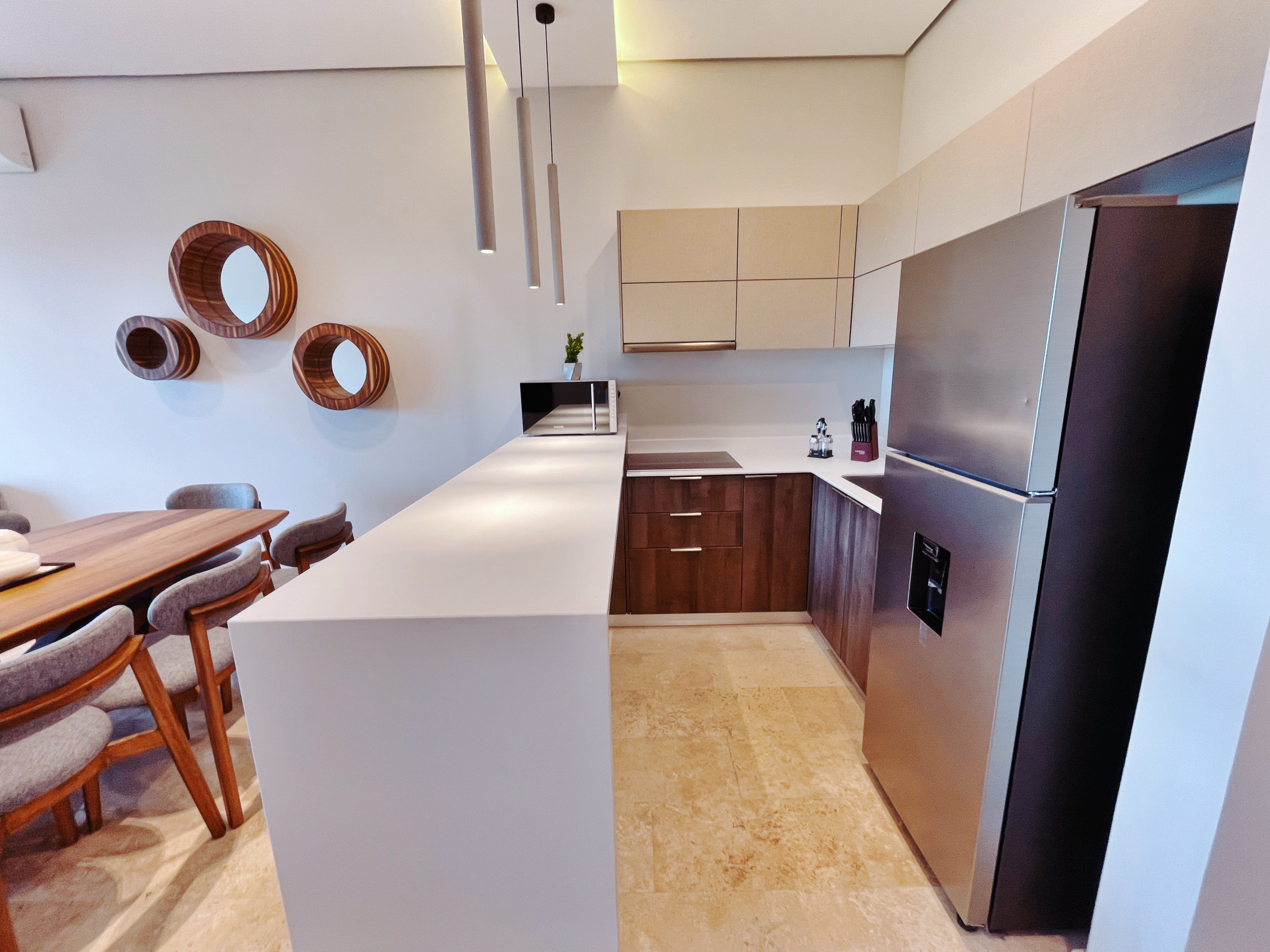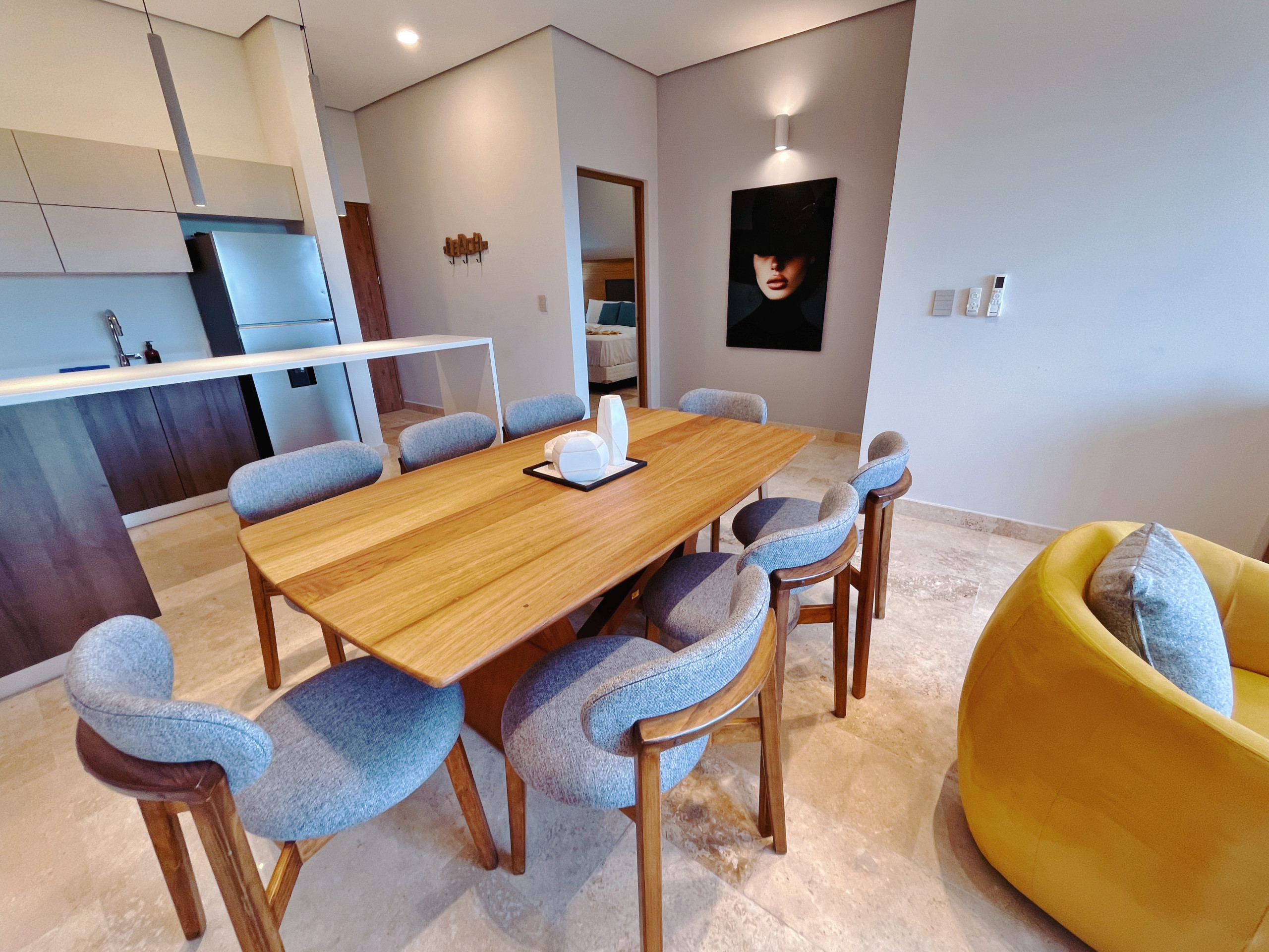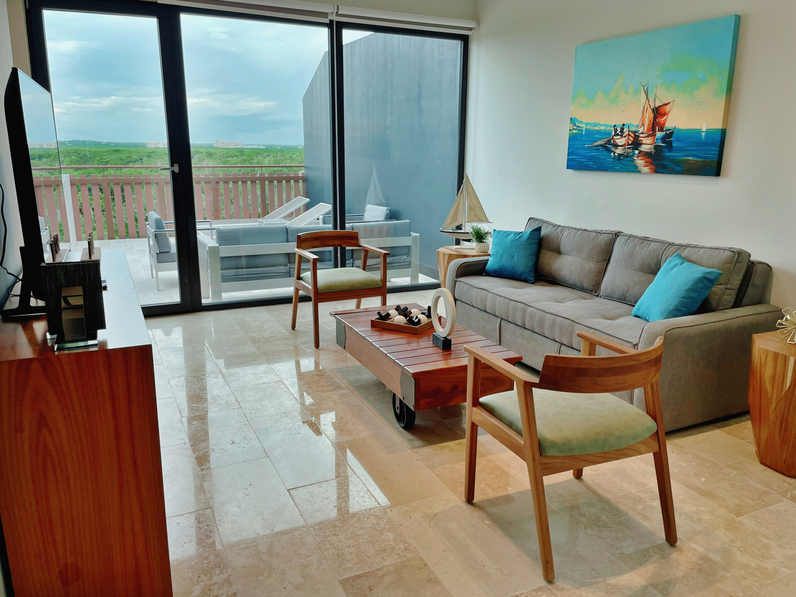 Despiértate con vistas al océano desde la sala de estar, 1 balcón y terraza privada en este exclusivo ático del Distrito Amira, un lujoso alquiler vacacional de 190 m² diseñado para huéspedes que buscan comodidad, privacidad y una experiencia premium en Tulum.