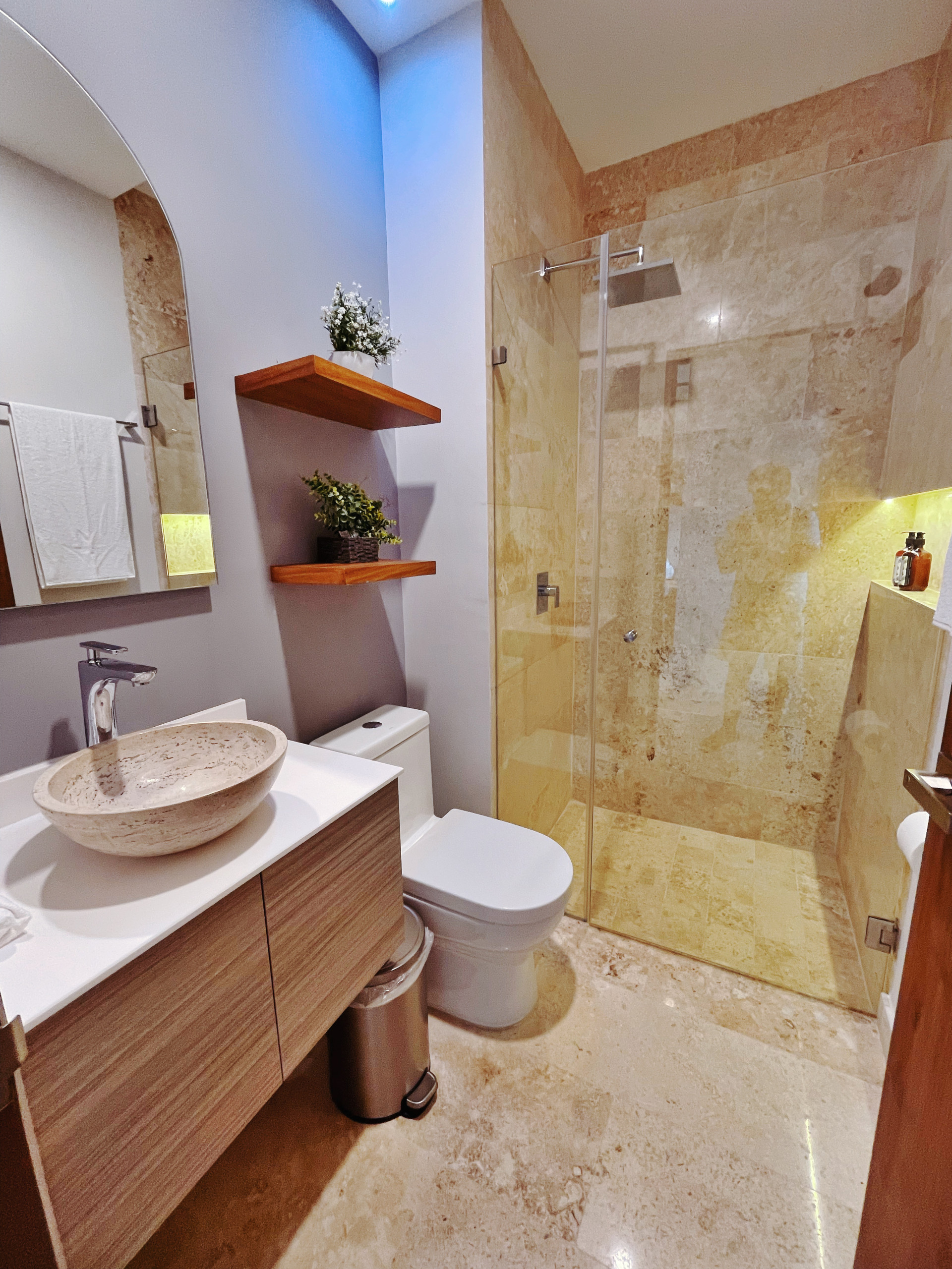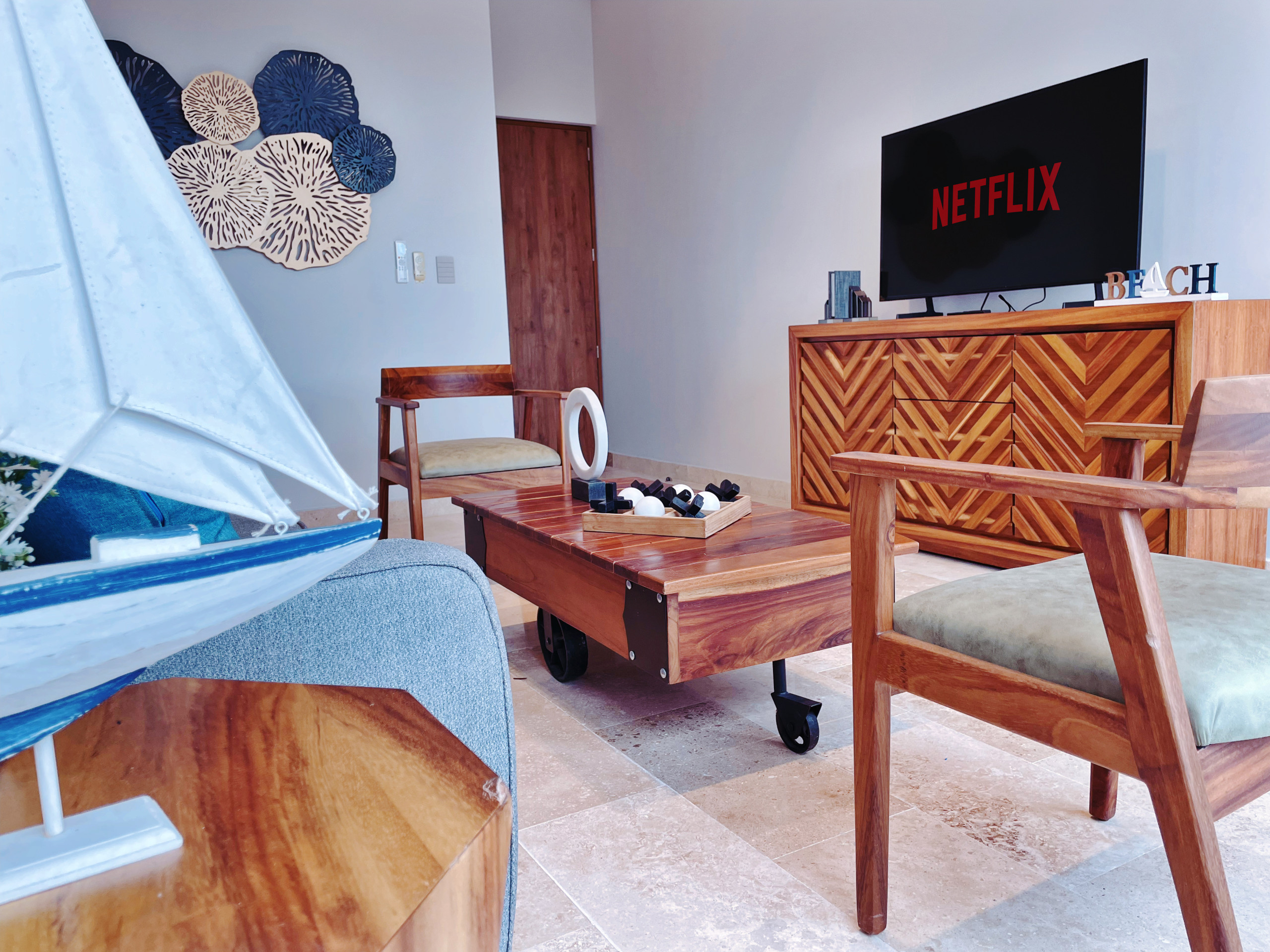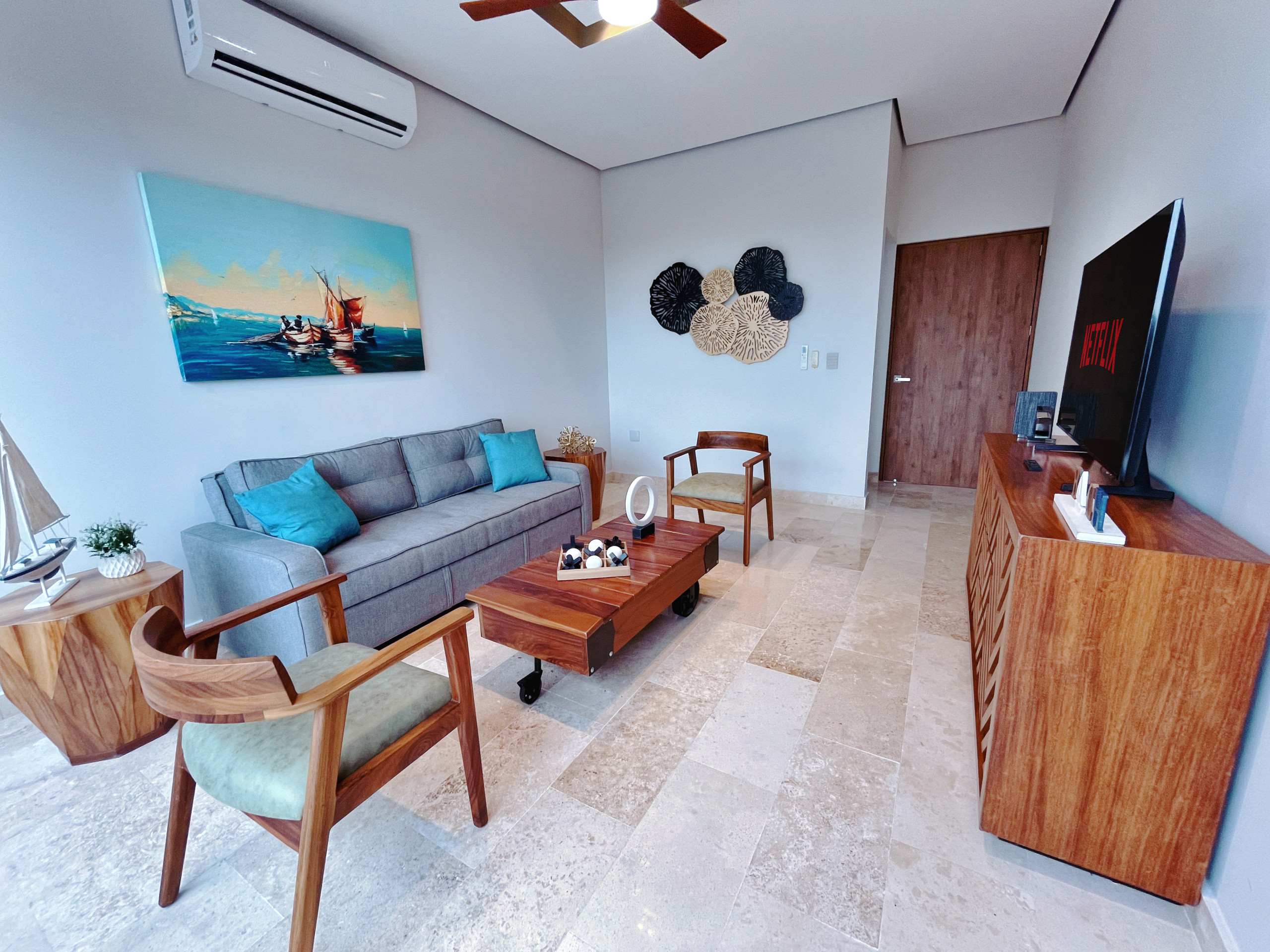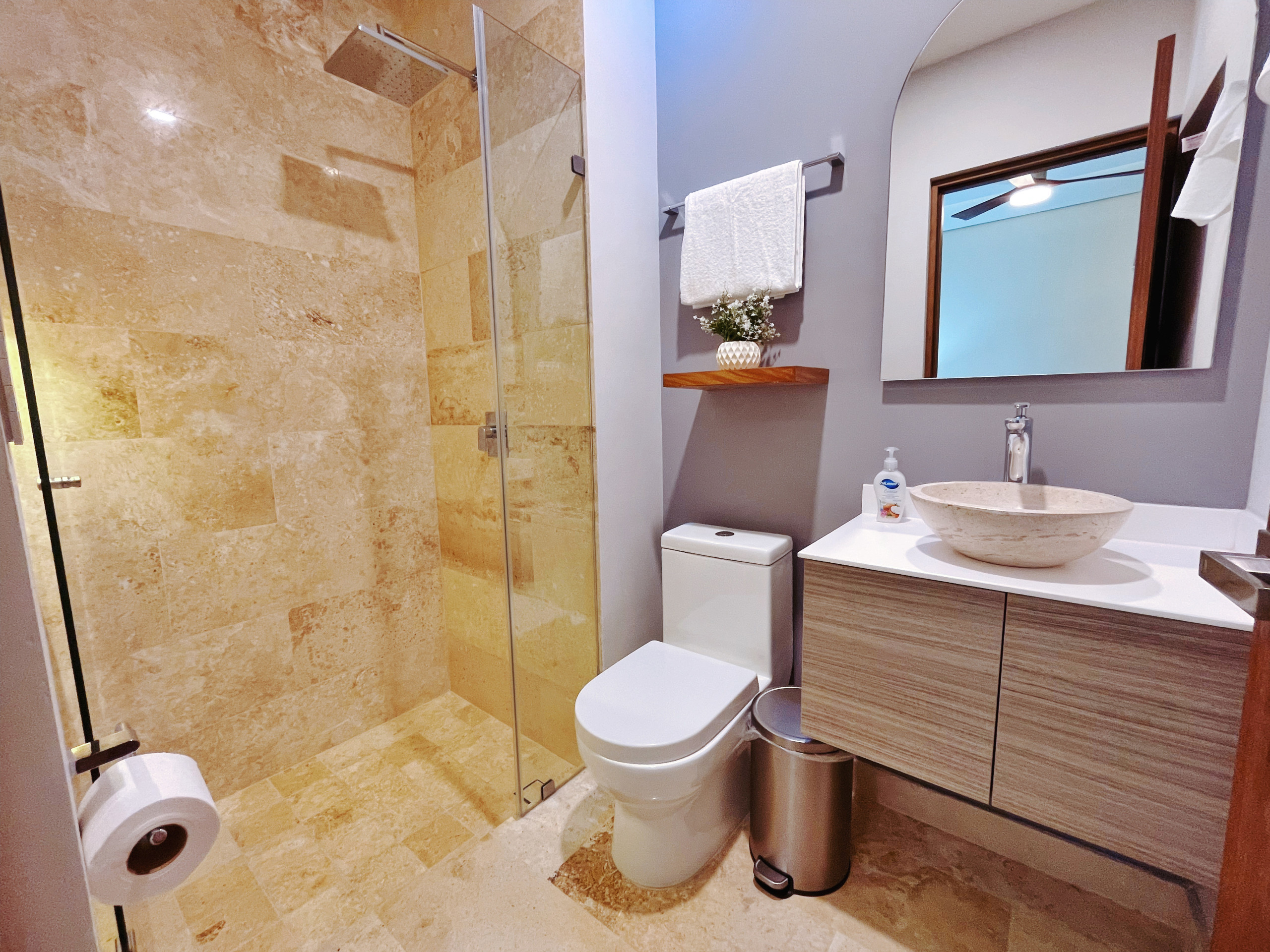 Despiértate con vistas al océano desde la sala de estar, 1 balcón y terraza privada en este exclusivo ático del Distrito Amira, un lujoso alquiler vacacional de 190 m² diseñado para huéspedes que buscan comodidad, privacidad y una experiencia premium en Tulum.