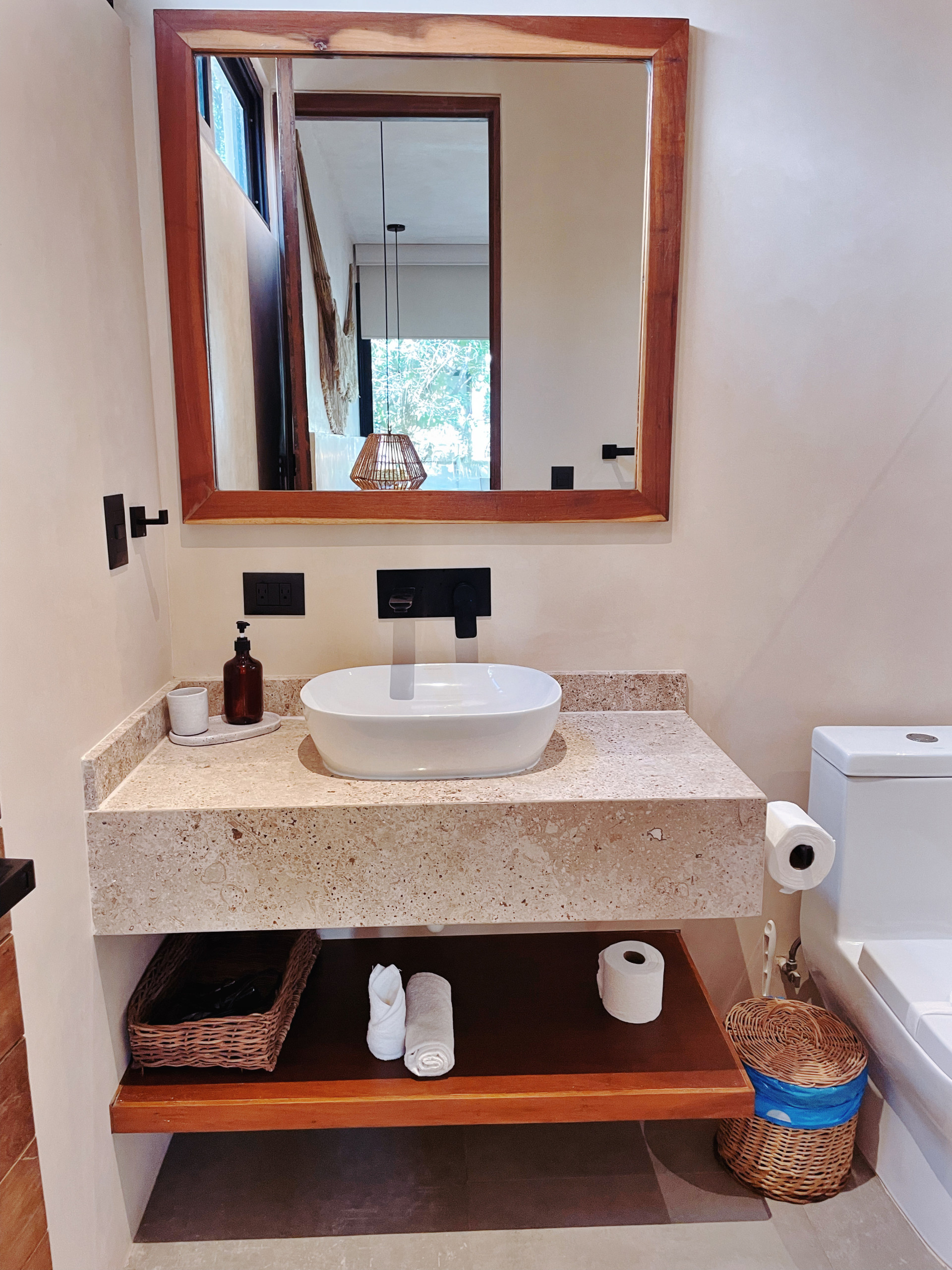 Artículos de aseo: Jabón de manos orgánico, champú, gel de ducha, detergente para platos, papel higiénico (biodegradable por confirmar según recomendaciones de alcantarillado), toallas de baño y toallas de playa y de piscina separadas