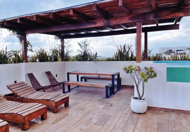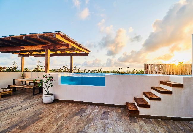 Hermoso PH de Lujo ubicado en el deseable área de Aldea Zama. Este PH muy espacioso cuenta con 4 dormitorios, 4.5 baños incluyendo 3 suites principales. También disfrutará de una piscina privada y una hermosa terraza, perfecta para relajación al aire libre y entretenimiento. El área de comedor acomoda cómodamente a 10 invitados. Con capacidad para 12 huéspedes, incluyendo un sofá cama king size, este PH es perfecto para grupos; parejas o incluso personas solteras que buscan privacidad.